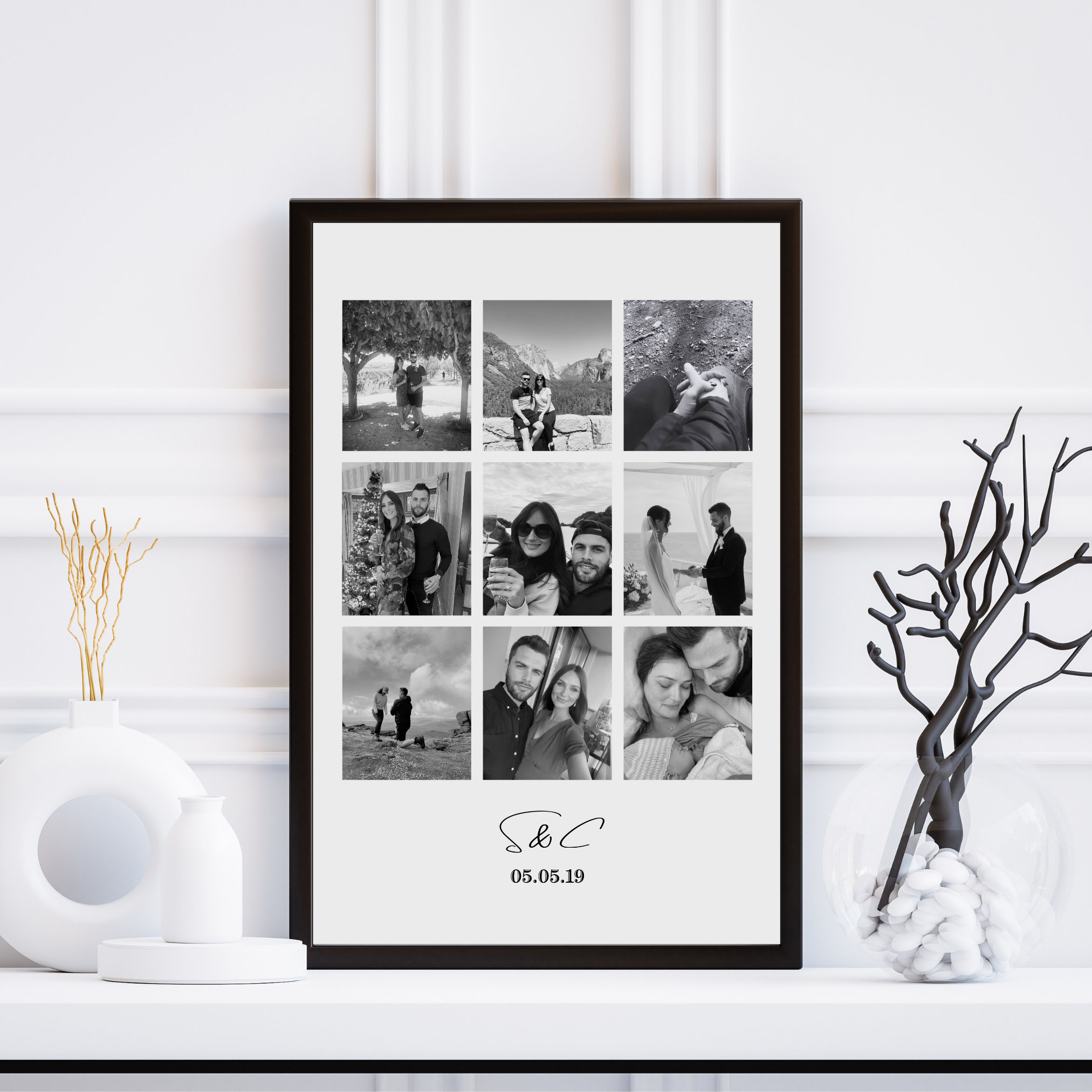 • Customised Layout Options: Choose from a variety of layout designs and styles to create a personalised collage that reflects your relationship and fits your decor preferences.