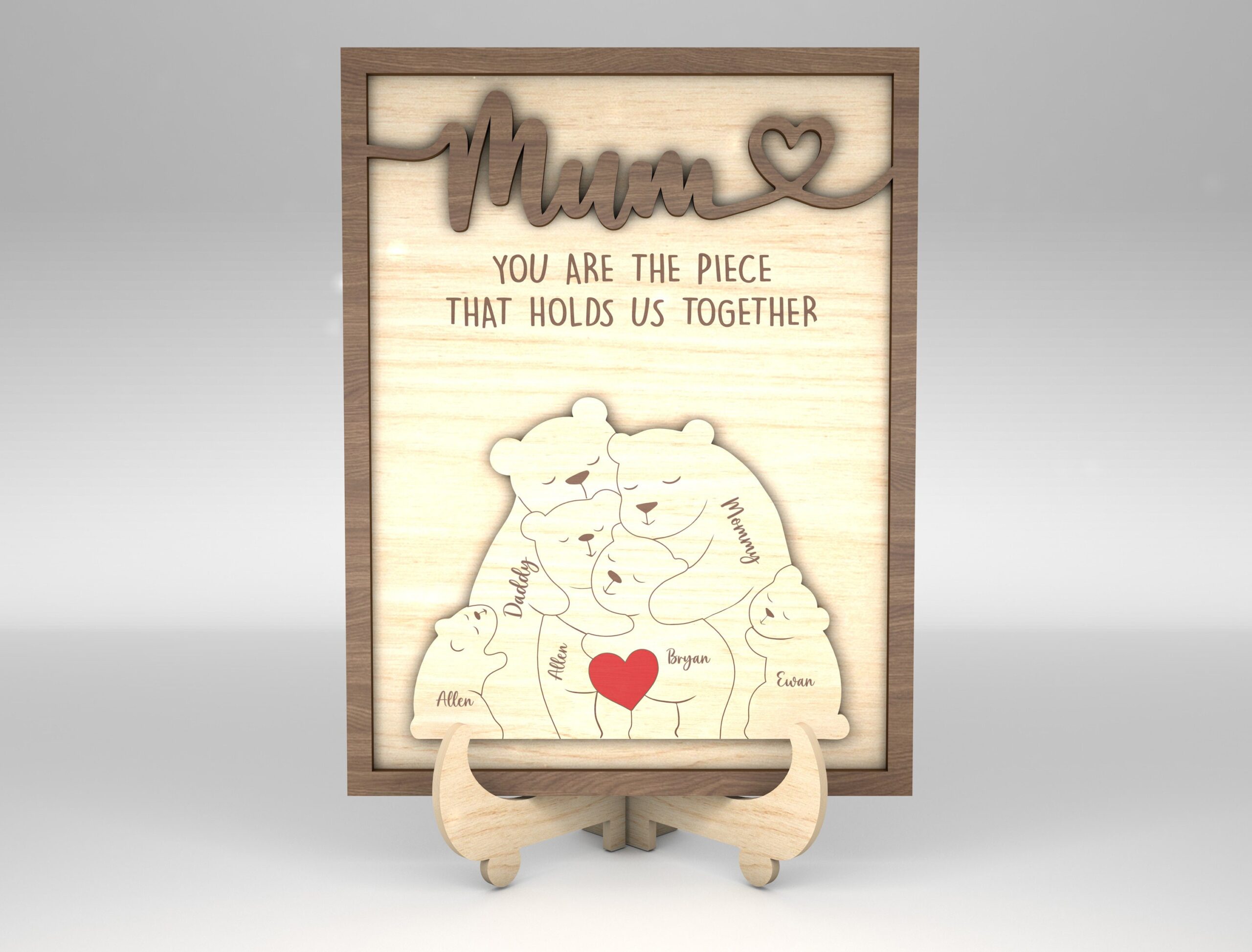 Capture the warmth of your family in a beautiful and customizable digital design with our Personalized Family Puzzle Sign SVG Bear. This downloadable SVG file is ideal for Cricut, Silhouette, and other cutting machines. Whether you’re creating a heartfelt gift, wall décor, or a keepsake sign, this puzzle-style bear layout lets you add individual names, making each piece of the bear represent a beloved family member. Perfect for Mother’s Day, Father’s Day, housewarming gifts, or just because—you’ll be turning pixels into precious memories in minutes.