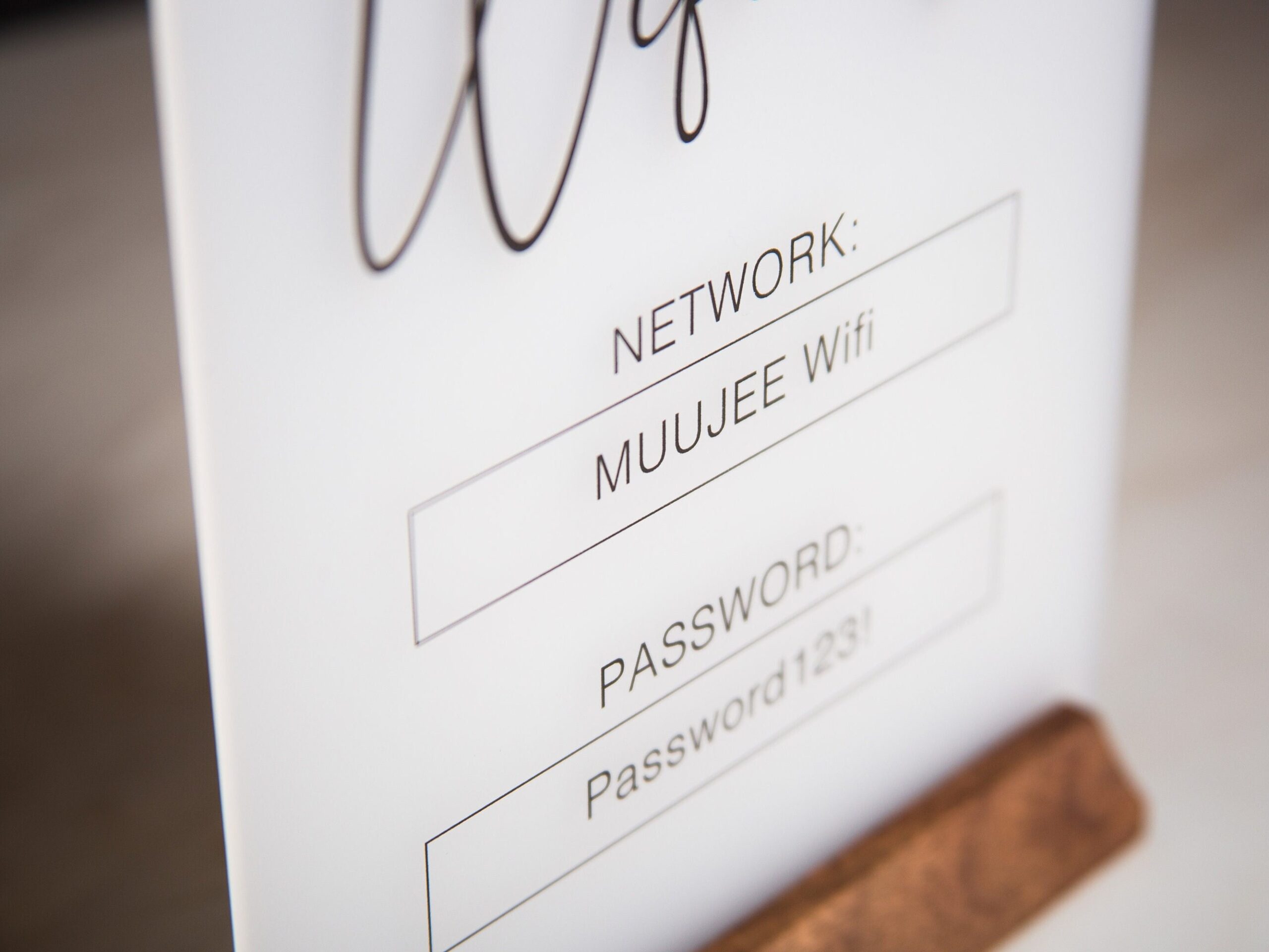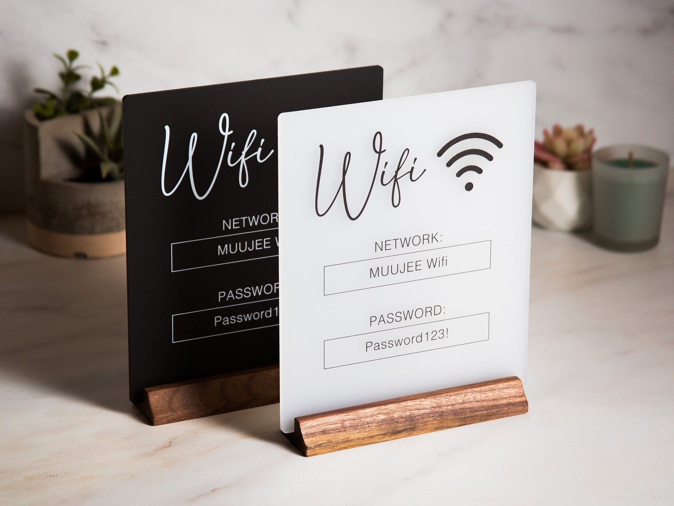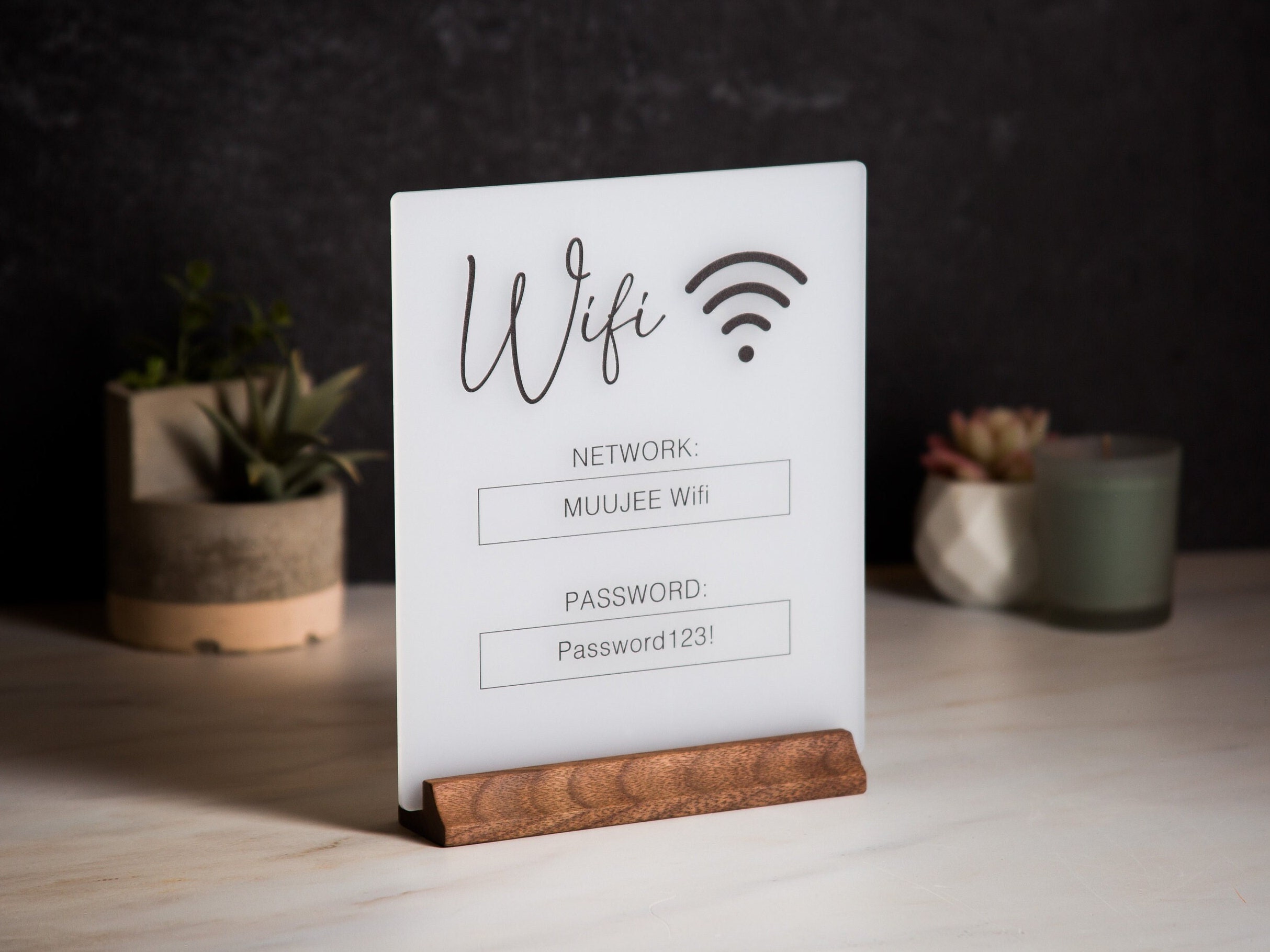 • Customizable design: Personalize the sign with your wifi network name and password, as well as any additional instructions or branding elements.